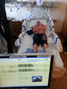 The first of the final, let’s-be-absolutely-sure tests was a “Video EEG”. This means that Rachel checks into the hospital, gets wired up with electrodes, gets a video pointed at her 24/7 (except for bathroom trips), and waits to have seizures.